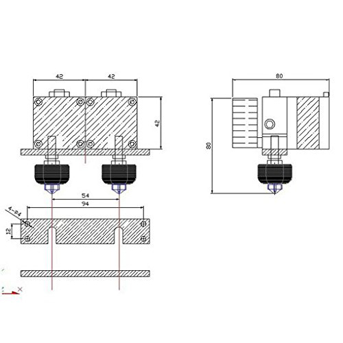 product description Technical data Description: 1. Extrusion nozzle: 0.4 mm 2 axis of rotation speed: 40 mm / sec 3 nozzle folw rate: about 24cc / hour 4. Printed material: ABS 5. Compatible 1.75mm filament 6. Cooling fan operating voltage: 12V 7. Extrusion head heating voltage: 12V K-thermocouple 500mm wire Electrical Specifications: 1. Step angle: 1.8 ° / step 2. Rated voltage: 4.83V 3. Current: 0.84 A / phase 4. Resistance: 5.75Ω / phase 5. Inductance: 9.3mH / phase 6. Torque: 2.8kg.cm 7. Insulation grade: B