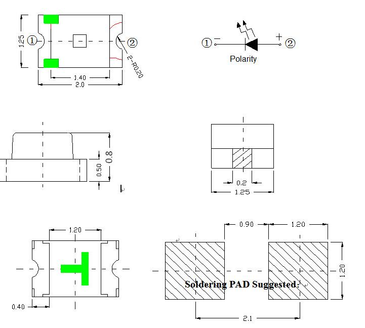 / 0805 Green SMD LED, LED green light emitting diode 3K/Reel