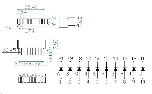 Dimensions & Weight Dimensions 2.5 cm x 1.1 cm x 1 cm Weight 5 g Frist , (PART NO.): B10SR Aplication: Outer Dimension Pancl Length: 25.4mm Pancl Width: 10.1mm Pancl Thickness: 7.9mm Emitted Color: Red Lead Pitch 2.54mm