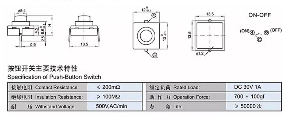 1208-YD/2pins Switch/2pins Self Lock Button