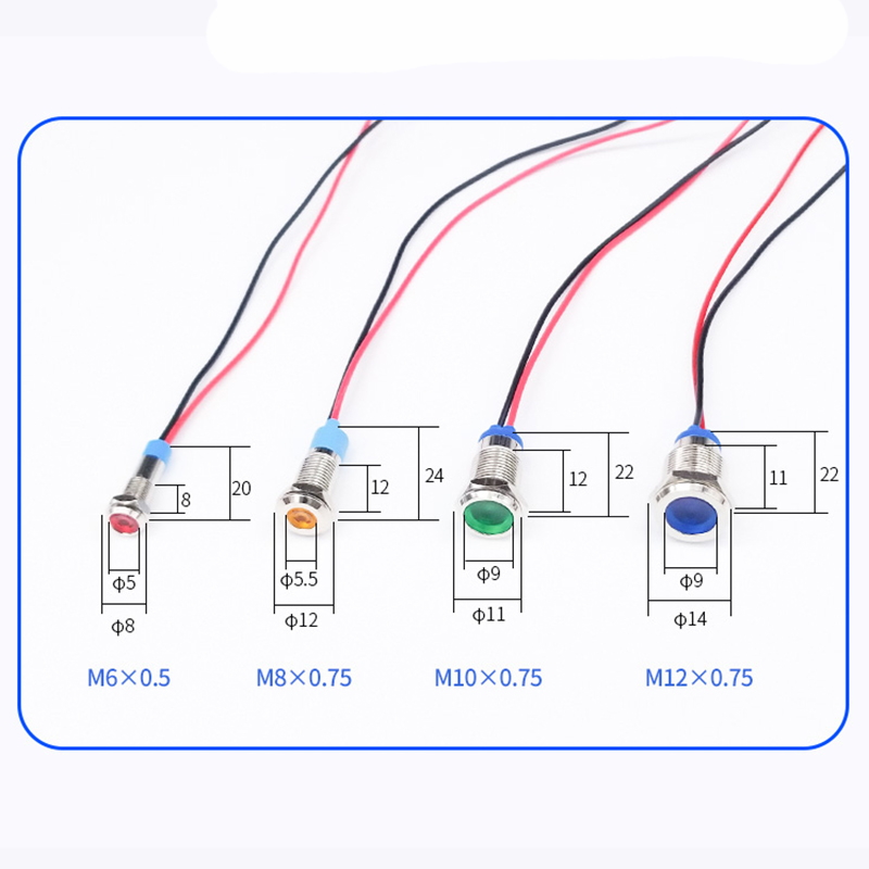 / 12V Metal Indicator Light LED 8mm Waterproof IP67 Signal Lamp Dot Concave Pilot Red Blue Green Yellow Hot