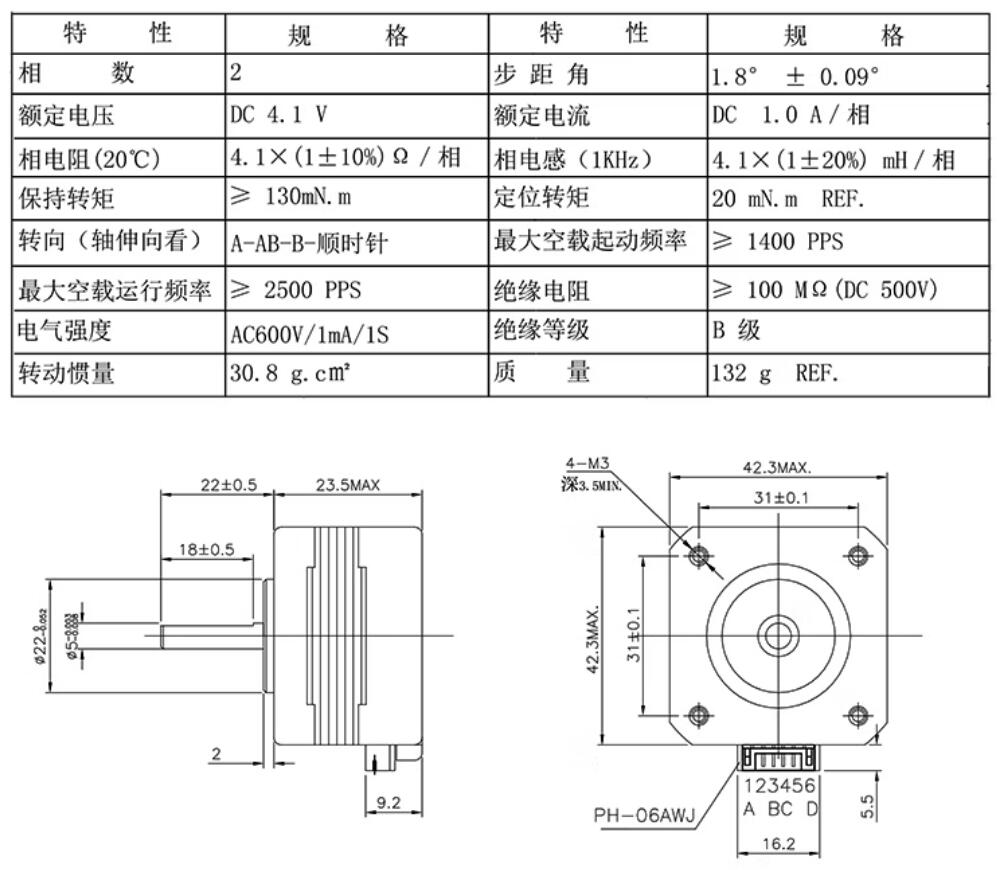 / 17HS4023 Stepper Motor 2 phase 6 Wire 4.1V