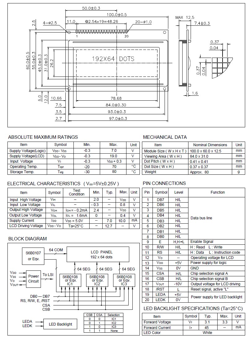/ 192x64 Graphic LCD Display Module