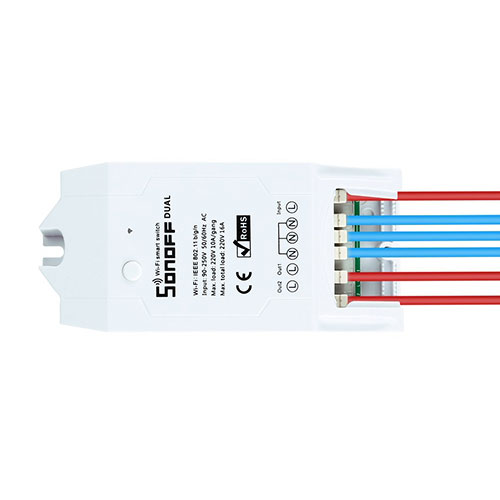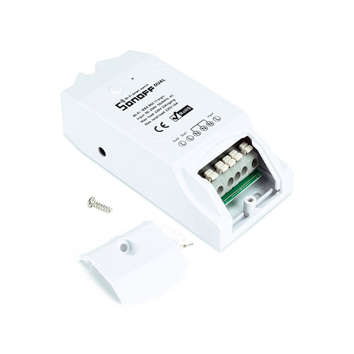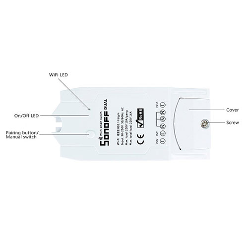 The Sonoff Dual WiFi Smart Switch is a dual-channel smart wireless remote control timer switch that connects and controls two home appliances and electronics such as fan controllers. This means that one Sonoff Dual equals two Sonoff base switches! Sonoff Dual inherits the simple installation and operation of the Sonoff Basic switch, fast WiFi access, APP remote control and more. Sonoff Dual Switch Control via IOS Android. In APP EweLink for iOS and Android, you can turn on / off two connected devices separately. However, the button on the Sonoff Dual dimmer switch is not an on / off switch, only long press to enter WiFi pairing status. You can set single / repeat / countdown schedules to turn on / off at a specified time, to share with others so that they can control together. Sonoff Dual is an excellent smart home automation module switch. product information technical details Package dimensions 4.7 x 2.2 x 1.3 inches