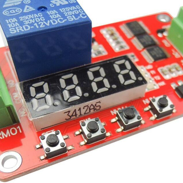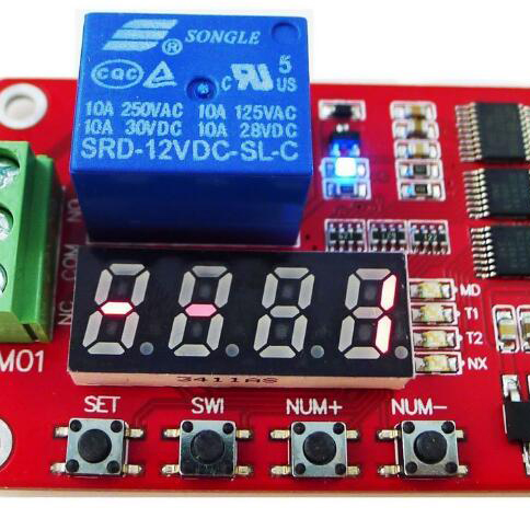 2-channel 12V DC multi-function self-locking relay PLC cycle timer module delay switch product manual Tips: Function 1-8 Power on automatically, function 9-18 requires high pulse signal (high duration shorter than 20ms, hereinafter referred to as the same) to trigger, function 9 is self-locking mode, function 10 is the level control mode. Two module interfaces: Relay output: three-wire interface, all interfaces are terminals 1 ------- No: Normally open relay interface, before the relay becomes empty, pull short circuit after COM1 ------ ------ --- COM: Universal Interface Relay 3 --------- NC: Normally closed relay interface relay and COM1 short circuit before vacant Load capacity: normally open port maximum load capacity: DC 0-30V / 10A, AC 0-250V / 10A NC port maximum load capacity: DC 0-28V / 10A, AC 0-125V / 10A Overall dimensions: 4.0 * 6.6cm, screw 4, diameter 3.0mm