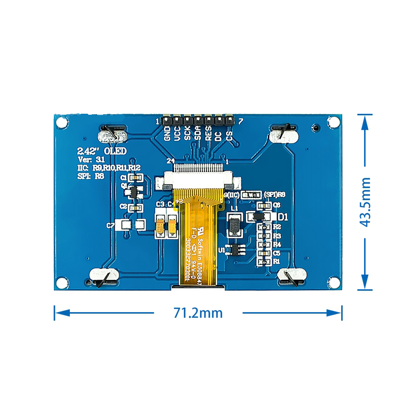 2.42 inch 128x64 OLED LCD Display Module SSD1309 7 Pin SPI/IIC I2C Serial Interface for Arduino UNO R3