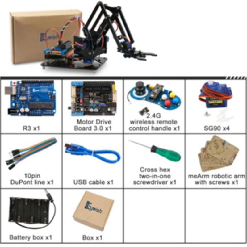 2.4G Kit/ 4DOF DIY Robot Arm Kit Educational Robotics Claw Set Mechanical Arm for Arduino R3,2.4G Wireless Control,Scracth Programming