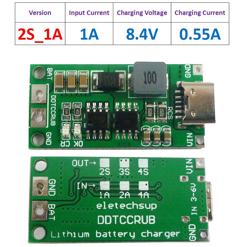 / 2S1A Multi-Cell 2S Type-C To 8.4V Step-Up Boost LiPo Polymer Li-Ion Charger 7.4V 18650 Lithium Battery