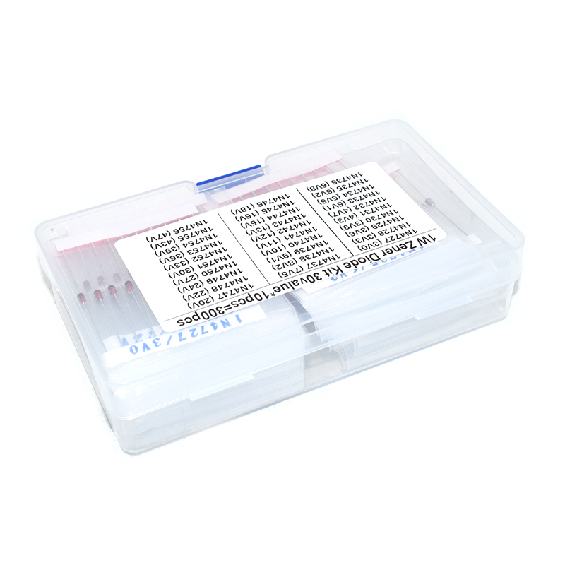 300pcs 30Values*10pcs 1W Zener Diode Assorted Kit 1N4727A (3V) /1N4728A (3.3V)/1N4729A (3.6V)/1N4730A (3.9V)/1N4731A (4.3V)/1N4732A (4.7V)/1N4733A (5.1V)/1N4734A (5.6V)/1N4735A (6.2V)/1N4736A (6.8V)/1N4737A (7.5V)/1N4738A (8.2V)/ 1N4739A (9.1V)/1N4740A (10V)/1N4741A (11V)/ 1N4742A (12V)/1N4743A (13V) 1N4744A (15V)/1N4745A (16V)/1N4746A (18V)/ 1N4747A (20V)/1N4748A (22V)/1N4749A (24V)/1N4750A (27V)/1N4751A (30V)/1N4752A (33V)/1N4753A (36V)/1N4754A (39V)/1N4755A (43V)/1N4756A (47V)