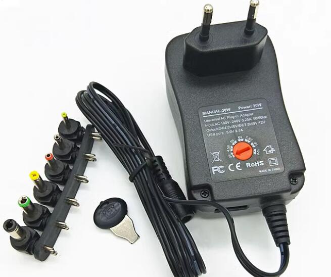 30W multi-function adapter power charger voltage adjustable 3V to 12V with 6 adapters with USB , EU Adapter