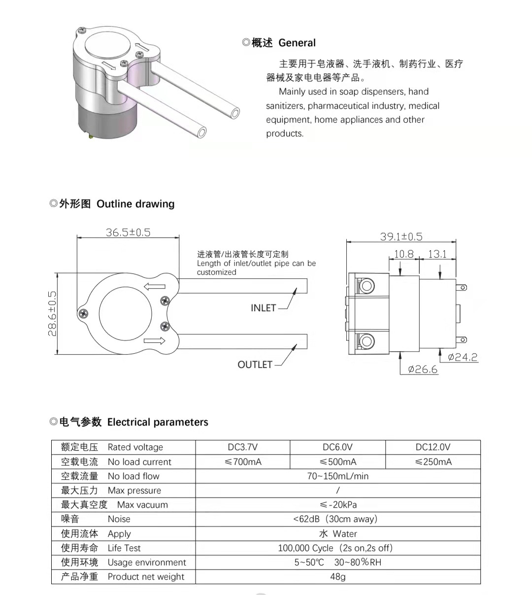 3-12V DC Mini Water Pump / 310 Mini Peristaltic Pump / Induction Hand Sanitizer Oil Metering Pump