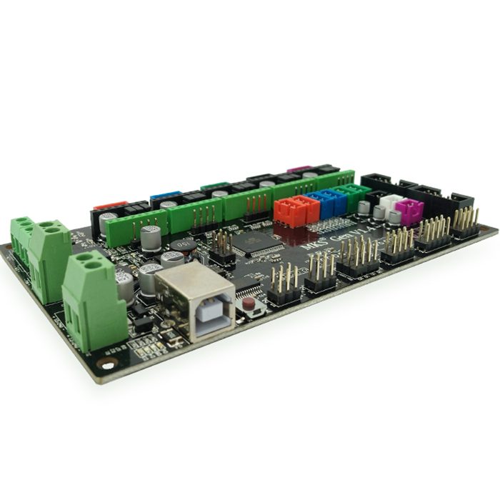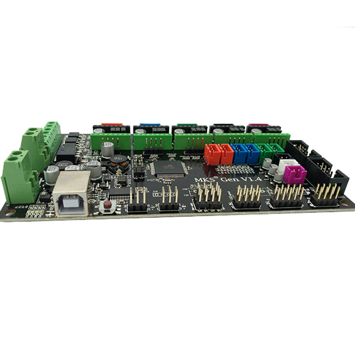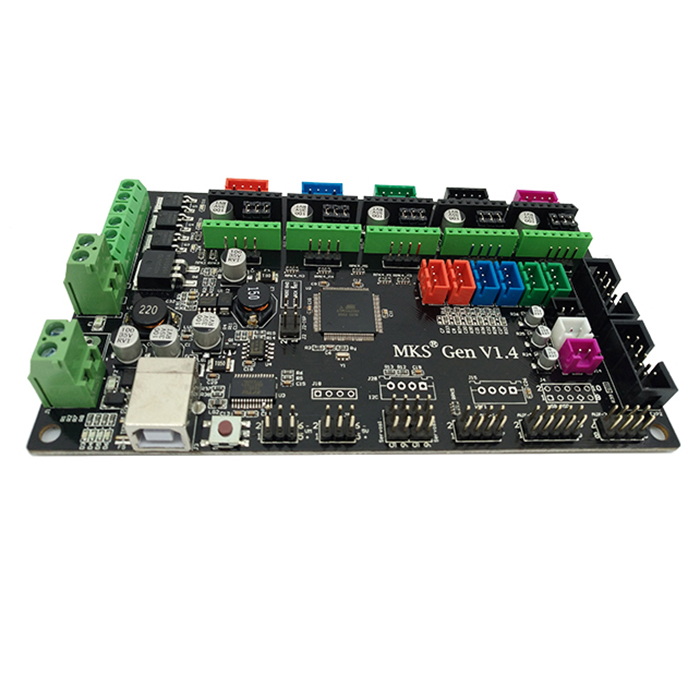 Product description -Can accept 24V input power under the same system can be hot-bed current is reduced to 1/4, an effective solution to the hot bed MOS pipe heat problems. -Tthe firmware can use open source firmware Marlin, ramps1.4 identical configuration and can directly replace Ramps1.4. - Can be connected to the control panel and 12864LCD Ramps1.4,2004LCD control panel.(Can't be sure to match all of stype of 12864LCD and 2004LCD ) - Reserved for motor pulse and direction output ports for easy plug-in high-current To add a large current (eg 2A, 5A) motor drive circuit. -Reserved Ramps1.4 on Servos, AUX-1, AUX-2 interface that provides three 5V output, three 12V outputs. Specification: Weight: 118g Application: 3D Printer Part Weight: 118g