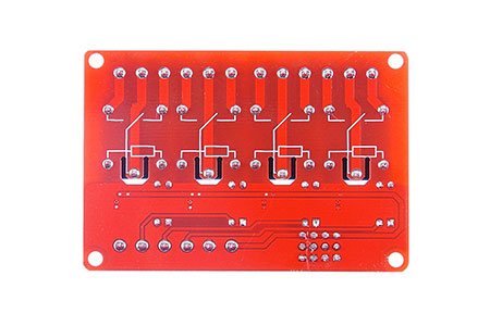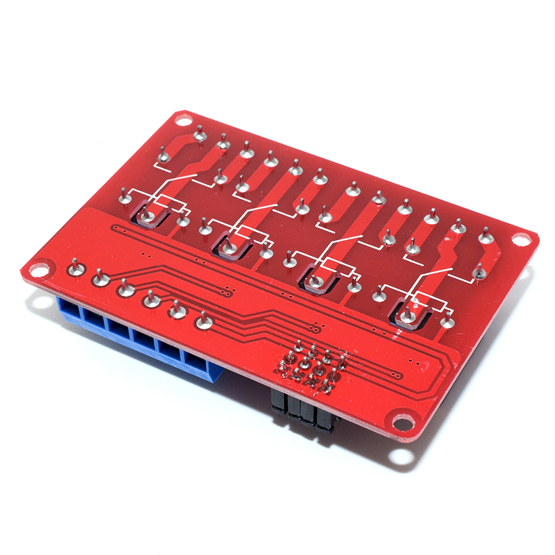 A module description : 1, the module uses genuine quality relay , normally open interfaces Maximum load : AC 250V/10A, DC 30V/10A; 2, using SMD optocoupler isolation , driving ability , stable performance ; trigger current 5mA; 3, the module voltage is 5V, 9,12 V, 24V are available ; 4 , each way module can be set high or low triggered by jumper ; 5 , fault-tolerant design , even if the control line is broken , the relay will not operate ; 6 , the power indicator ( green ) , 4 relay status indicator ( red ) 7 , interface design humane, all interfaces can be connected directly via terminal wiring leads , very convenient 8 , module size : 73mm * 50mm * 18.5mm ( L * W * H ) 9 , has four mounting bolts holes , hole 3.1mm, 67mm * 44.5mm pitch Two module interface : 1, DC +: positive power supply ( voltage required by the relay , there 5V.9V.12V and 24V choice ) 2, DC-: negative power connection 3, IN1-IN4: each way based on the settings , can be high or low to control the corresponding relay Relay outputs : a 12- line interface, the interface can be directly connected to all leads , user-friendly 1, NO1 - NO4: normally open relay interfaces , relay before the vacant after the pull shorted with COM 2, COM1 - COM4 Common Interface Relays 3, NC1 - NC4: normally closed relay interface relay shorted with COM ago , after the pull- vacant High and low trigger selection ends : 1.S1-S4 in order to relay a way -4 road high and low trigger selection ; 2. com with low short circuit , triggering the corresponding relay is low , while the high end of the short com high trigger