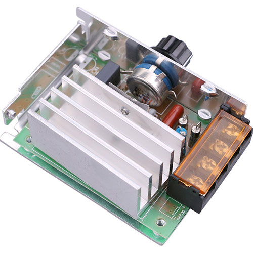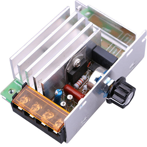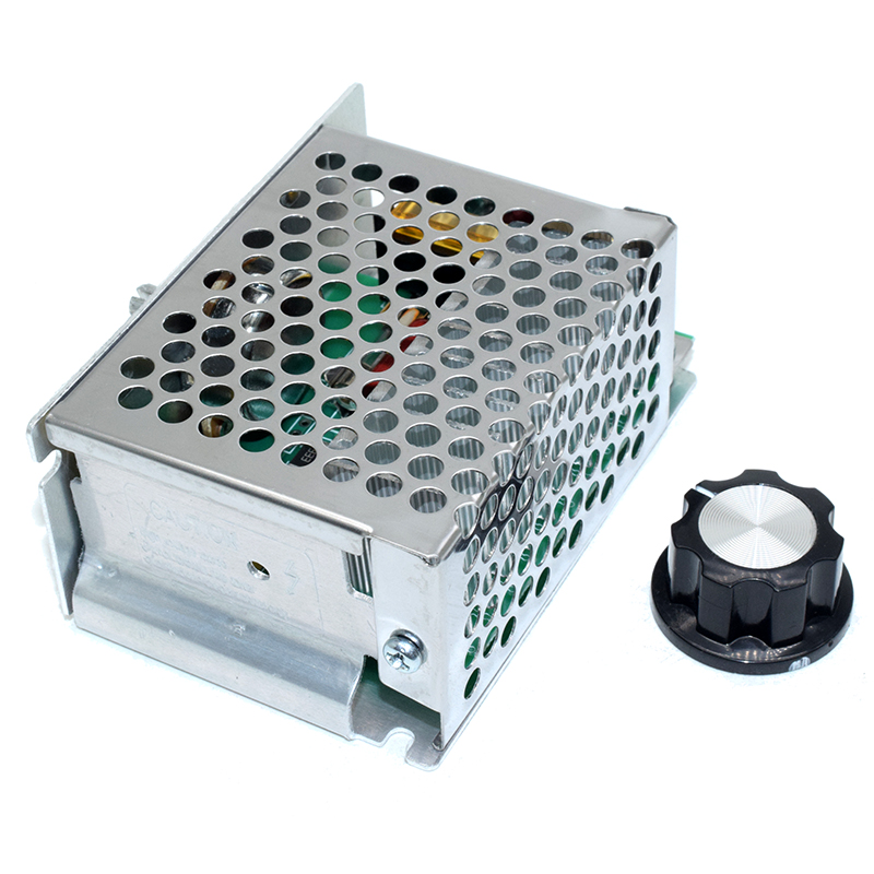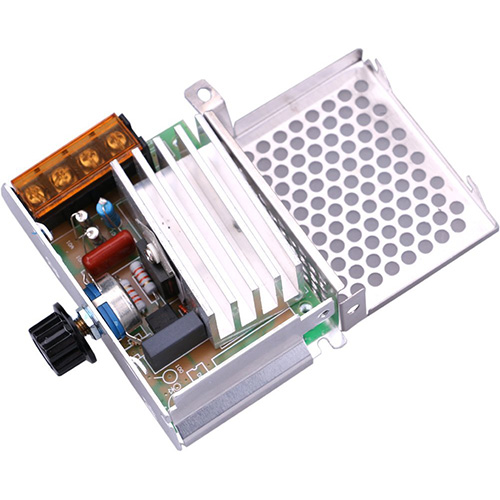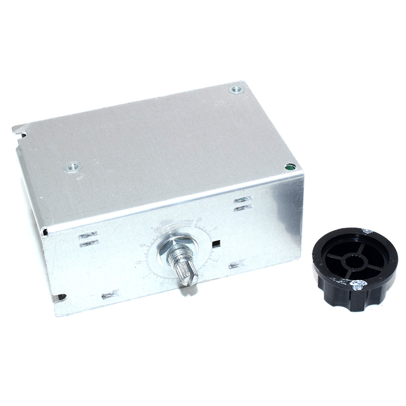 product description Size: AC110V 4000W parameter: Working voltage: AC 110V Maximum power: 4000W (connection resistance load) Voltage regulation: AC 0V - 110V adjustable Size: (shell) length 91x wide 59mmx high 34MM usage: This product is connected 110V AC input, the output is connected to wires or appliances, Rotary potentiometer rotary rod, Can play speed, pressure, temperature control effect Applications: The use of the product of the new two-way high-power SCR, Because the current maximum design up to 20 A A good solution to cooling the wire in the situation Resistance is too small, leading to over-current problems; Can easily adjust the output voltage 0-110V Such as: electric furnace, water heater dimming, light dimming, small motor speed, electric iron, thermostat and so on. To achieve dimming, thermostat, adjust the voltage effect. Can be used for power less than 4000W power electrical appliances Inductive or capacitive load power should be reduced, the regulator is equipped with two-way high-power thyristor potentiometer are with nuts, thick aluminum alloy shell large radiator Note: Load can not exceed the maximum power, otherwise it will burn out modules and appliances; Try to use resistive load; Inductive, capacitive load power to maintain more than half of the margin. Package includes: 1x AC 110V 4000W high-power thyristor electronic regulator product information Size: AC110V 4000W Package size 7 x 5.8 x 1.8 inches Product weight 6.4 ounces