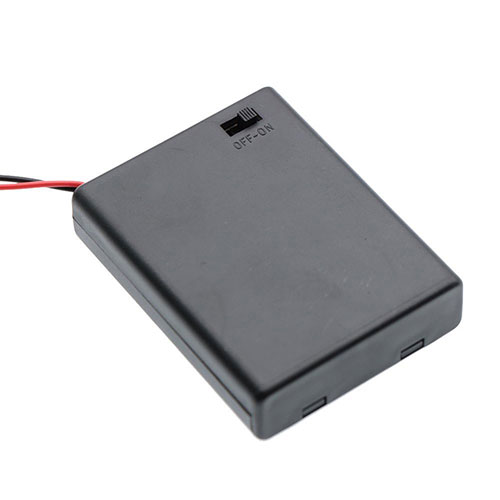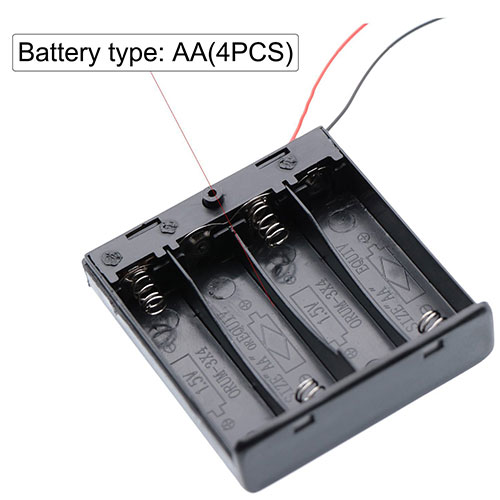 product description Description: Storage box material: plastic, metal Battery Holder Type: 4 X 1.5V AA; External Connection: 150mm (Red and Black Cables) Application: Can be used for projection battery power supply. The unit uses an Arduino microcontroller, connects it to a string of LEDs, and so on. Note: Do not touch the red black line when the batteries output 6V in series. Screw can be fixed (screw is not connected) Package includes: 6 x 4 x 1.5V AA battery cover with lid (battery not included) Case color: black Battery box material: soft PP material External connection: two 150mm red and black cables Package includes: 6 x 4x1.5V AA cover with cover (not including battery) product information Package dimensions 9.4 x 5 x 1.6 inches Product weight 2.24 ounces