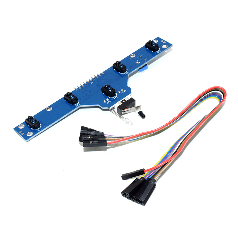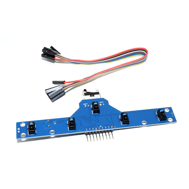 product description 5 channel tracking sensor module board tracking module infrared detection Description: BFD-1000 is a high cost of NewWay kind of electronic products, for the production of tracking robot friends, multi-function tracking module, this module is sufficient to meet the daily tracking Task, but also with a touch detection sensor infrared distance sensor, making your design to better adapt to the robot's situation. BFD-1000 is specially designed for black (white) line search, especially for black and white line complex cross-line black and white line detection, it is a 6-channel high sensitivity infrared sensor (5-channel line inspection a road non-blind) line. Specifications: Detection Range: 0 - 4cm (Black and White Line Sensor), 0 - 5cm (Adjustable Distance Detection) Input Voltage: 3.0V - 5.5V Output Type: Digital Output Features: BFD - 1000 Integrated 5 Channel High Sensitivity tracking sensors that accurately track complex black lines (white lines) are more at ease for simple black line tracking. The shield of the BFD-1000 Integrated IR Sensor can be adjusted by sliding the rheostat. BFD-1000 has a special touch sensor design, making the robot design easier. BFD-1000's output signal is a digital signal (high and low), easy to connect with the microcontroller. BFD-1000 sensor output status LED lights for the indicator, easy to debug. BFD-1000 supports 3.0-5.5v voltage, to meet the requirements of most systems. With the high sensitivity of the sensor, the tracking can be arbitrarily changed in the range of 0.5 mm to 40 mm without any adjustment. Package includes: 1 tracking sensor module