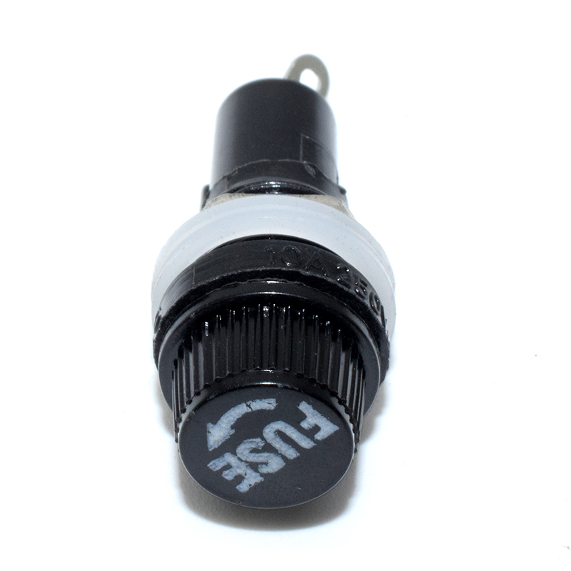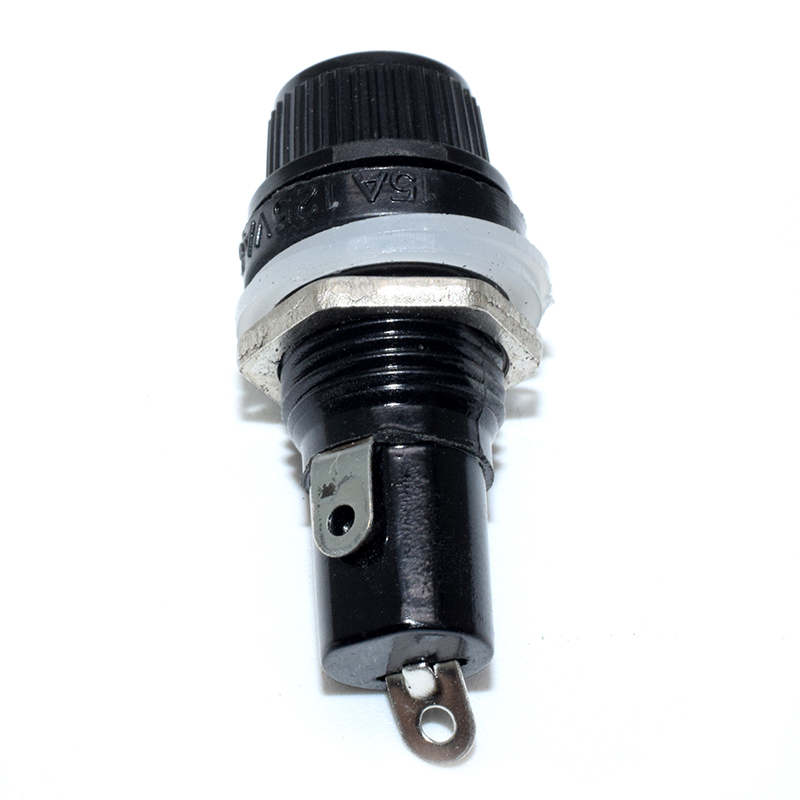 Product description Fit for : 20 x 5mm Fuses;Rated Voltage : AC 250V 10A 125V 15A Thread Dia : 11.7mm/0.46";HolderSize(Not Include Pin ) : 32 x 16mm/ 1.2" x 0.6"(L*D) Total Length : 37mm/1.5";FusesSize : 20 x 5mm/0.8" x 0.2"(L*D) Material : Plastic ,Metal;Color : Black, Silver Tone Net Weight : 23g;Package This panel mounted fuse holder is suitable for 5 x 20mm type fuse. With screw cap and solder-lug terminals. Product information Technical Details Item Weight 0.64 ounces Package Dimensions 2.9 x 2.2 x 1.3 inches