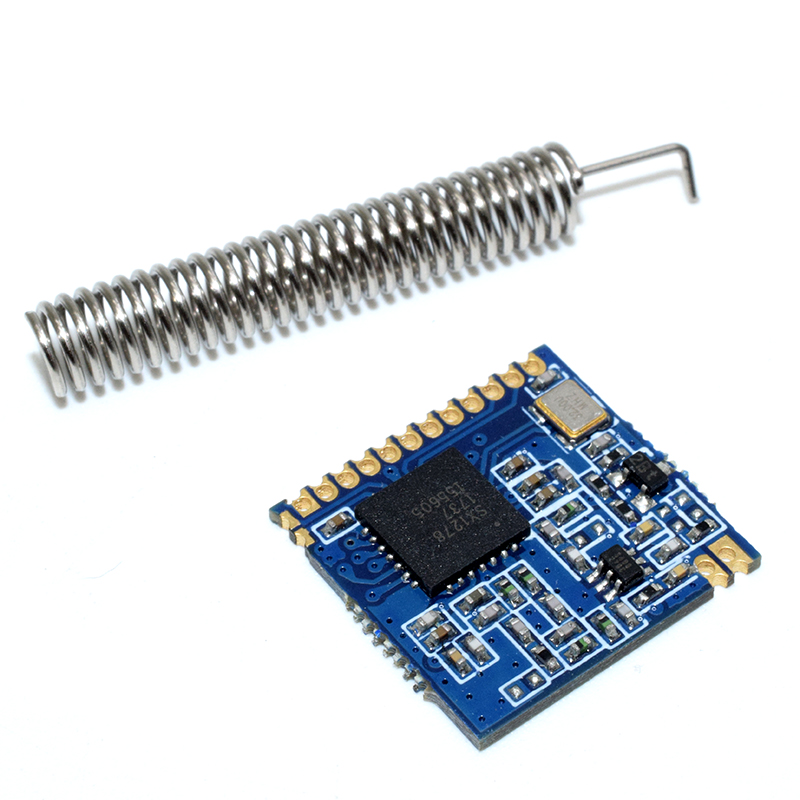 Product description Material: metal Size: approx. 17*16.5mm Transmit power: 0.1 W Band: 433 MHz Feature: Using FSK / GFKS technology and LoRa (remote) spread spectrum technology. Half duplex communication. Super anti-jamming (channel rejection ratio: 56db). High Receive Sensitivity: 139dbm. (32M Passive 10ppm Crystal). ISM multi-band, no need to apply for frequency free use. Multi-frequency and a variety of transmission rate for chosen. Can be used in FDMA and FM technology. Intelligent reset, low voltage monitoring, timer wakeup, low power mode, sleep mode. Low power consumption to accept current: 10-12mA. 256-bit FIFO TX / RX. RSSI channel detection function. Transmission mode: FIFO / direct mode (recommended FIFO pack mode). FC / air wake-up function / low power / carrier sense / FEC error correction / AEC encryption. Ultra-long distance transmission open up to 5KM. Fine workmanship and stable. Durable in use. Application: Remote control and remote data acquisition system; Wireless meter reading; Wireless ordering machine, oil, mining, construction sites, factories and other original 485/232 interface system; Industrial data acquisition, transmission, intelligent control system; Wireless alarm system; Intelligent furniture system; Baby monitoring system / hospital paging system; Wireless small data transmission system.