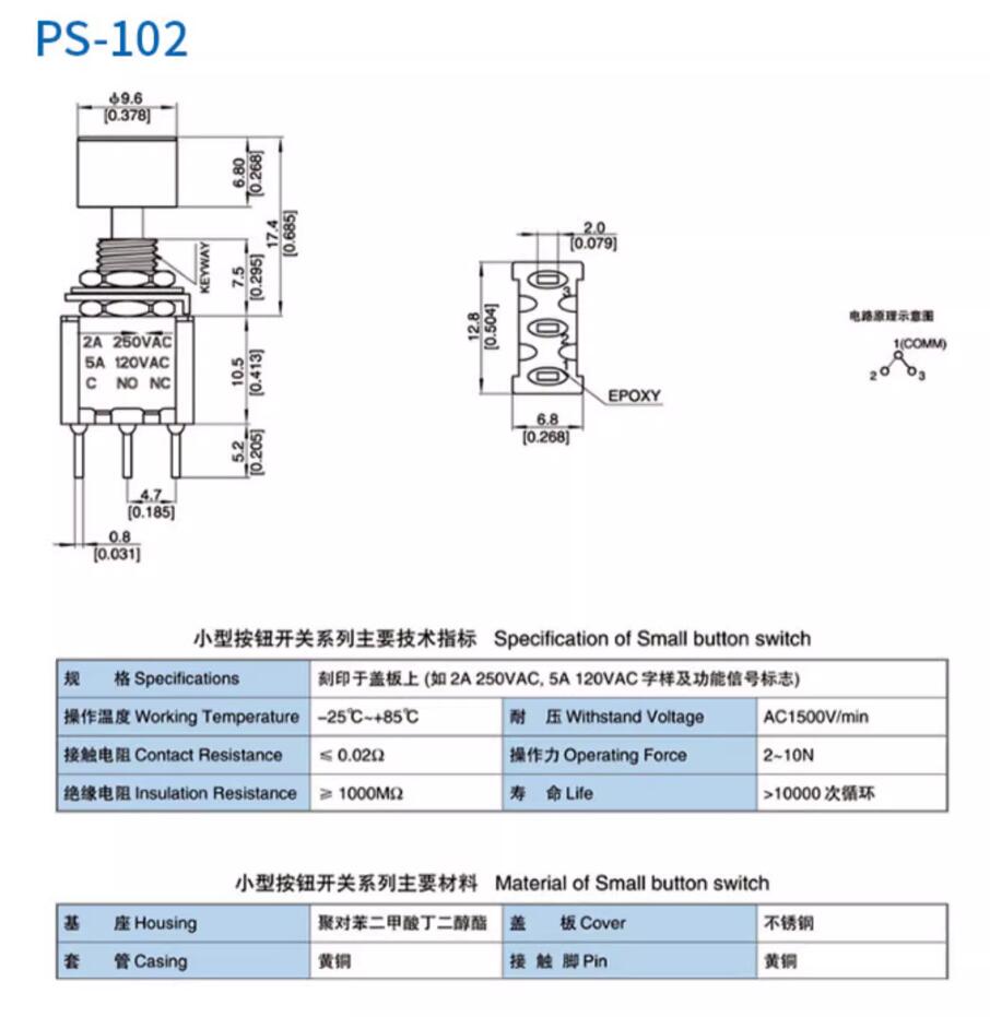 / 6MM switch DS-612 / 3-pin reset PUSH button MTS-102M PS102