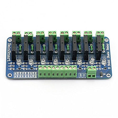 Specifications SSR Output (each channel) Load voltage range: 75 to 264VAC (50/60Hz). Load current: 0. 1 to 2 AMP. Power supply 5VDC / 160mA (all channel ON). Input control signal voltage: 0V - 0. 5V Low stage (SSR is OFF) 0. 5V - 2. 5V (unknown state). 2. 5V - 20V High state (SSR is ON). SSR Spec. Manufacturer: OMRON Part number: G3MB-202P, 5V version. Isolation: Phototriac. Zero cross: Yes. Rated output load: 2A at 100 to 240VAC. (50/60Hz). Load type: General purpose.