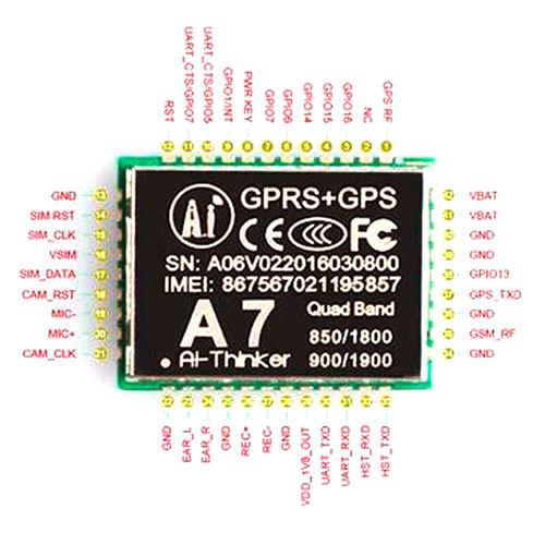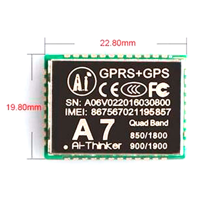 Size 22.8 × 19.8 × 2.5mm; Operating temperature -30 to +80; Operating voltage 3.3V-4.2V; Supply voltage> 3.4V; Standby average current 3ma the following; Support GSM / GPRS quad band, including 850,900,1800,1900 MHz; Support China Mobile and China Unicom in the global 2G GSM network; GPRS Class 10; Sensitivity <-105; Support voice calls Support SMS sending Support GPRS data traffic, the highest data rate, download 85.6Kbps, upload 42.8Kbps; Support standard GSM07.07,07.05 AT commands and extended commands Ai-Thinker; It supports two serial ports, a serial port to download an AT command port; AT commands support standard AT and TCP / IP command interface; Supports digital audio and analog audio support for HR, FR, EFR, AMR voice encoding; Support ROHS, FCC, CE, CTA certification; SMT 42PIN