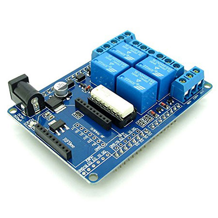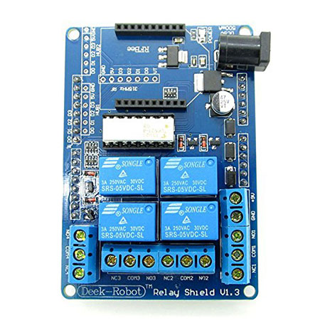 Maximum switching voltage relay: 240VAC/60VDC Relay Max Switching Current: 5A Contact load capacity: 1A 250VAC, 3A 120VA / 24VDC Relay: 4 Wireless output interface: (serial) xbee / Bluetooth Bee / Wireless Programming Module Occupied by Ar-duino ports: (relay) digital ports 2,3,4,5, (wireless module) digital ports 0,1