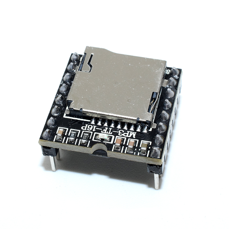 Product Features TF card U disk mini MP3 player audio voice module Supports sampling rate (KHz): 8 / 11.025 / 12/16 / 22.05 / 24/32 / 44.1 / 48 24-bit DAC output, dynamic range support: 90dB, SNR support: 85dB Full support for FAT16, FAT32 file system, maximum support 32G TF card, support U disk for 32G, 64M bytes for NORFLASH There are many control modes to choose from. IO control mode, serial mode, AD key control mode feature: TF card U disk mini MP3 player Arduino DFPlay audio voice module board Features: 100% new, high quality! This is a compact and cheap MP3 module that can be connected directly to the speakers. Modules with battery power, speakers and keyboards can be used individually or through a serial interface such as an Arduino UNO or any microcontroller with a serial port module. The module itself perfectly integrates hardware decoding of MP3, WAV, WMA. The software supports TF card drivers, support FAT16, FAT32 file system. You can play the specified music through a simple serial command, and how to play music and other functions, without the cumbersome low-level, easy to use, stable and reliable. Product Specifications: 1. Supports sampling rate (KHz): 8 / 11.025 / 12/16 / 22.05 / 24/32 / 44.1 / 48 2. 24-bit DAC output, dynamic range support: 90dB, SNR support: 85dB 3. Full support for FAT16, FAT32 file system, the maximum support 32G TF card, support U disk for 32G, 64M bytes for NORFLASH There are a variety of control modes to choose from. IO control mode, serial mode, AD key control mode 5. Broadcast language point function, you can pause the background music is playing. After playing the background of the ad to play the sound to continue playing 6. Audio data sorted by folder; supports up to 100 folders, each folder can be assigned 255 tracks 7. 30 adjustable volume, adjustable equalizer 6