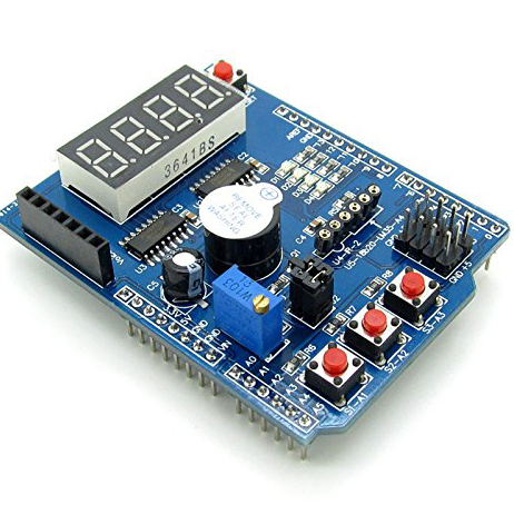 Product description Description: This board can seamlessly connect with 2009 UNO LENARDO 2560 and other Mainstream Controller. 4 LED indicator, its convenient for Debugging. DS18B20 temperature sensor interface LM35 temperature sensor interface 3296 precision adjustable potentiometer, with analog input port. Integrated infrared receiver Four digital LED Segment Displays (using 74HC595 driver provincial IO learning SPI). Three separate buttons, a reset button. its convenient for experiments (HMI). With Buzzer Bluetooth, wireless interfaces, voice module, voice recognition module can be used for wireless communication experiment Servo interface, easy for drive servos. Infrared detection interface for easy docking and infrared, to achieve human traffic statistics. Packge Content: 1 pcs Arduino Multi-function Shield