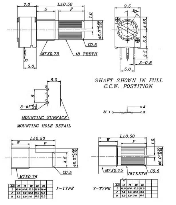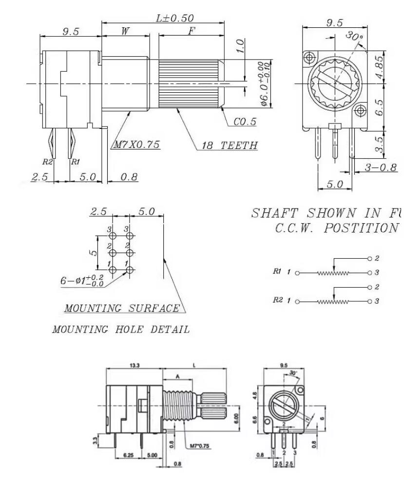 Audio Amplifier Sealed Linear Volume Potentiometer Resistor 15mm Shaft 8 PIN 5K RK097