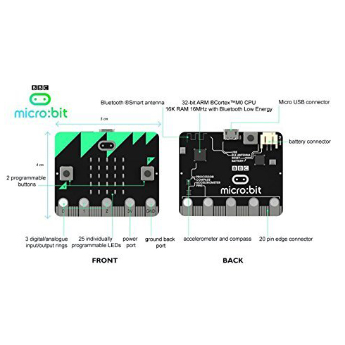 You can use your BBC micro: bit to make all sorts of cool pieces from robotics to instruments - the possibilities are endless. This small device has many features, including a flashing 25 red LED lights, two programmable buttons that can be used to control the game or to pause and skip songs on the playlist, detect motion and tell you which one you are facing Direction, and even use low-energy Bluetooth connectivity to interact with other devices and the Internet! characteristic: Microprocessor: 32-bit ARM CPU 5x5 LED Matrix with 25 Red LED Indicators, Graphical, Scrolling Text and Alphanumeric Characters Two programmable buttons. Use them as game controllers, or control your music on your smartphone On-board motion detectors or 3-axis digital accelerometers detect motion, such as shaking, tilting or free-fall Built-in compass, 3D magnetometer to sense the direction and degree of movement, but also can detect the presence of certain metals and magnets Bluetooth Smart Technology. Connect micro: bit to other micro: bits, devices, phones, tablets, cameras and other common objects. Five-ring inputs and outputs (I / O) including power supply (PWR), ground (GRD) and 3 x I / O Read data from sensors and control objects such as motors or robots 20-pin edge connector: This allows the micro: bit to be connected to other devices via standard connectors such as Raspberry Pi, Arduino, Galileo and Cano Micro-USB Controller: Controlled by a separate processor and presented to the computer as a micro stick: System LED x 1 Yellow System button switch x 2 product information technical details Product weight 5 ounces Product Size 6.4 x 4.7 x 1.1 inches Project size L x W x H 6.42 × 4.72 × 1.1 inches Voltage 12 volts