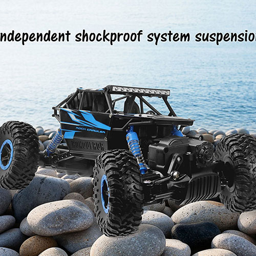 Off-Road Remote Rock Crawler Remote Control Car. lightweight bumper structure. All-weather four-wheel drive, large non-slip tires and high suspension shock the greatest durability. Powerful twin motor, up to 10 km (6.2 miles) per hour maximum speed. Three-channel transmitter with radio control frequency of 2.4 GHz. Recommended age 8 +. Use 4 AA batteries and 3 AA batteries (excluding batteries). The latest 1:18 full size R / C monster truck with a double powerful motor - accelerates practical experience up to 10 km / h. Suspension type shock protection system to better protect the truck - Application: Ground grass or sand. Product size 5 x 6 x 12 inches Product weight 2.3 pounds