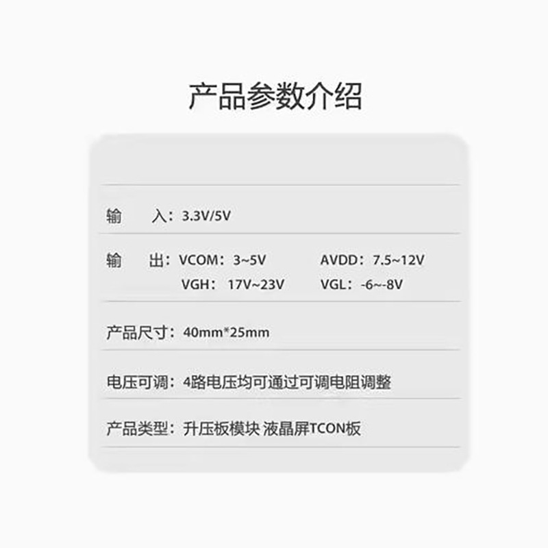 / CA-508 Four-Channel Adjustable Boost TCON Board 12V / LCD TCON Board VGL VGH VCOM AVDD Four-Channel Adjustable Boost Module