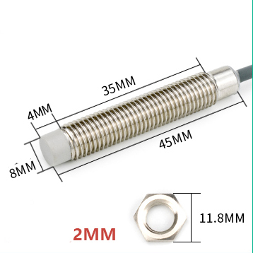 / Capactive Type/Detection distance: 2MM / Installation method: Non flush / Output method: PNP NO normally open / Product diameter: M8