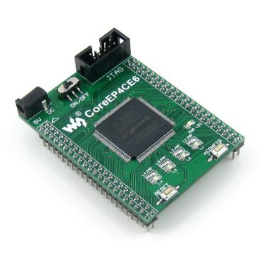 Product description EP4CE6E22C8N: the ALTERA Cyclone IV FPGA device which features: Operating Frequency: 50MHz Operating Voltage: 1.15V??3.465V I/Os: 80 LEs: 6K RAM: 270kb PLLs: 2 Debugging/Programming: supports JTAG AMS1117-3.3, 3.3V voltage regulator AMS1117-2.5, 2.5V voltage regulator AMS1117-1.2, 1.2V voltage regulator EPCS16, onboard serial FLASH memory, for storing code Power indicator LEDs Reset button nCONFIG button: for re-configuring the FPGA chip, the equivalent of power reseting Power switch 50M active crystal oscillator 5V DC jack JTAG interface: for debugging/programming FPGA pins expander, VCC, GND and all the I/O ports are accessible on expansion connectors for further expansion LED jumpers CoreEP4CE6 core board x 1 USB power cable x 1 User guide CD x 1 Product information Product Dimensions 7.1 x 3.9 x 3.5 inches Item Weight 1.44 ounces