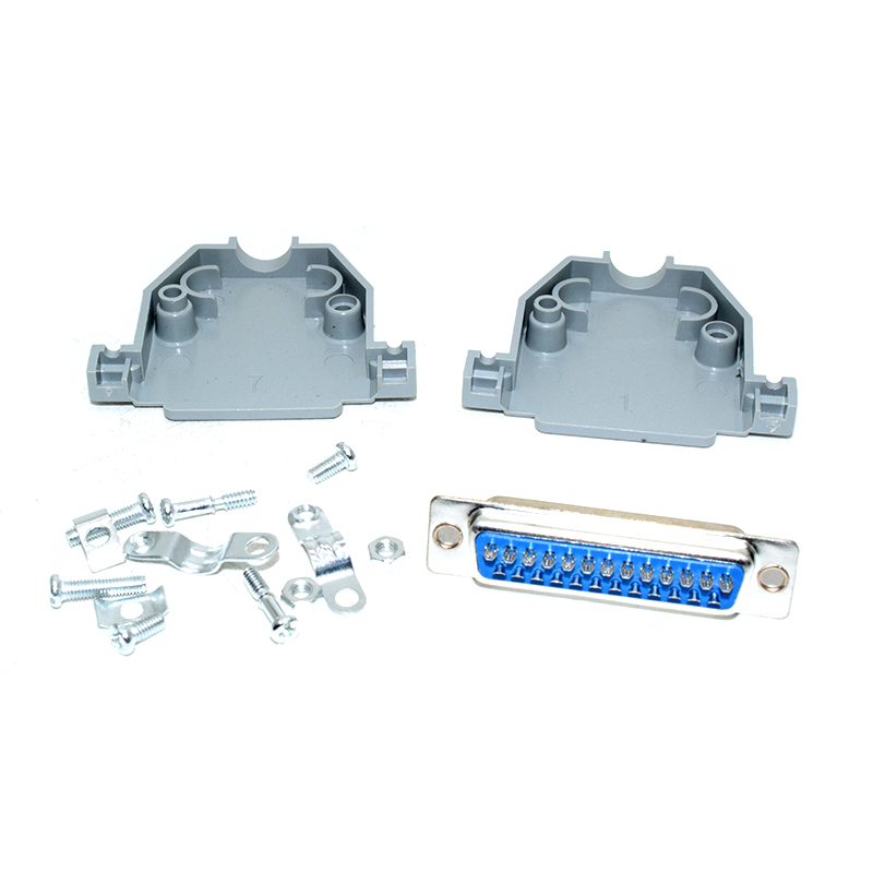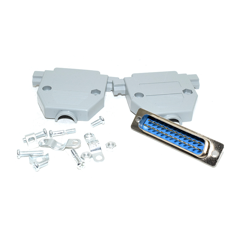 DB 25 25 terminal straight Male D-Sub PCB mounting connector hood cap.