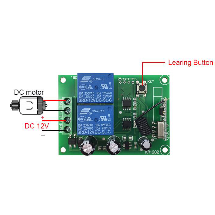 DC 12V 2 Channel Learning Code Relay Receiver + Professional Wireless Remote Control Transmitter 433MHz with White Case