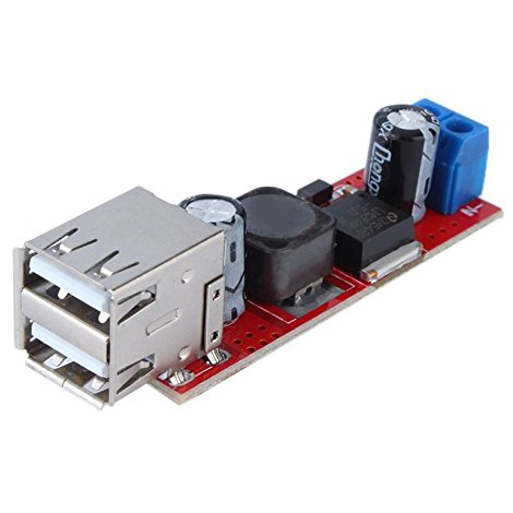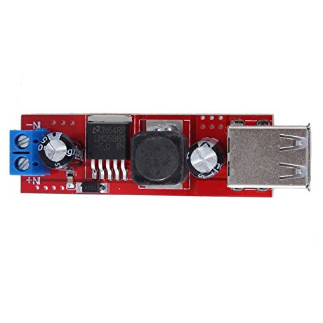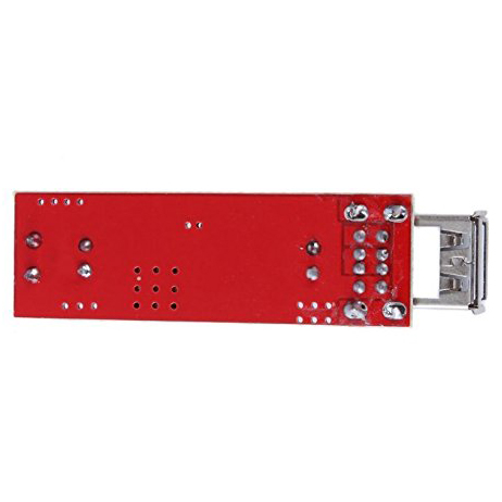 product description DIY mobile power supply, 5V output for charging phones, MP3, MP4, PSP and so on specification: Input voltage: 6V-40V Output voltage: 5V Output current: 3A Switching frequency: 150KHZ Conversion efficiency: 92% Operating temperature: -40 to +85 degrees Celsius color: red Size: 59mm x 21mm x 17mm product information Package size 4 x 2.6 x 0.8 inches Product weight 0.32 ounces
