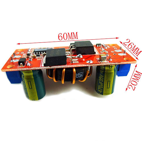 Description: 10A synchronous rectification adjustable non-isolated step-down module, constant voltage and constant current. Input voltage: DC 4-32V; Output voltage: DC 1.2-31V (adjustable). With short circuit and over temperature protection. If there is no input reverse protection or output anti-reverse protection, you need to install the diode in the input / output port. Widely used: automotive batteries, DIY solar cells, DIY constant voltage constant current power supply. Module Type: Non-isolated buck, the output voltage must be lower than the input voltage Input voltage: 4-32V (ensure below 36V) Output voltage: 1.2-31V continuously adjustable Minimum differential input and output: 1V Output current: 0-10A 6A natural cooling for a long time, the temperature does not exceed 60 degrees. When the temperature increases, please add an extra radiator or fan. Operating temperature: -40 to +85 ℃ Working frequency: 150KHz Conversion efficiency: up to 98% Short Circuit Protection: Yes (13A) Over-temperature protection: yes Input Reverse Polarity Protection: None (if required to string the input diode) Installation: four 3mm screws Connection: V-IN is marked on the board as input and V-OUT is output Module size: length 60mm × width 26mm × height 20mm Product weight 0.8 oz Package size 3.5 × 2.1 × 1.4 inches