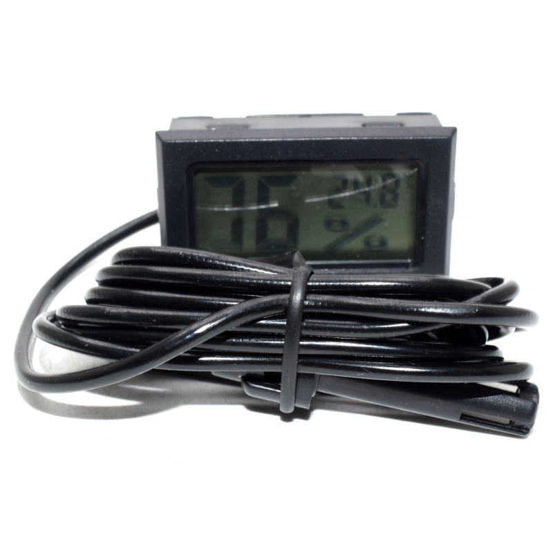 1. Function overview: 1.LCD display 2. Dimensions 48*28.6*15.2mm (measurement has small error) 3. LCD size: 35.7*16.8mm (measurement has small error) 4. Weight: 25 grams (without battery) 5. Humidity display 6. Humidity measurement range 10% to 90% 7. Humidity display resolution 1% 8. Humidity sampling period 10 seconds (1 minute) 9. Humidity measurement accuracy ± 5% 10. Rated voltage DC1.5v (2 AG13 button batteries) 11. Temperature measurement range -50 to 70 12. Temperature measurement accuracy ± 1 degree (at normal temperature) 2. Battery installation ? Flip to the back of the product; ? Push the battery cover in the direction indicated by the arrow; ? Put two LR44 button batteries into the battery compartment 3. Installation and operation 1. Embedded installation