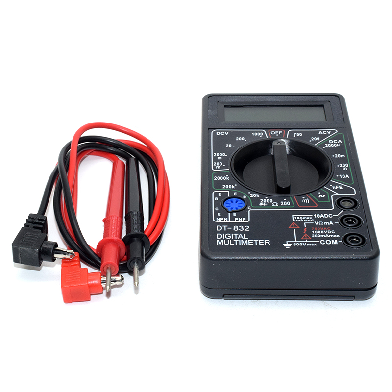 DT832 Digital LCD Multimeter Ohm Voltage Ampere Meter Buzzer Function with Test Probe