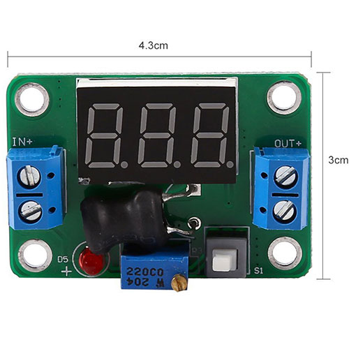 Specifications: Input Voltage: 4.5V~24V(max 24V, not suggested) Output Voltage: 0.93V~20V (step-down mode, the input voltage must be 2V higher than output ) Output Current: 2A Output Power: 20W(max) Ripple Frequency: Around 330Khz Ripple Peak: 30mV Size: 44mm×30mm×20mm Weight: 20g