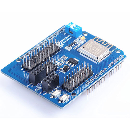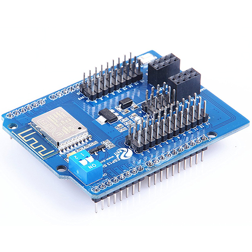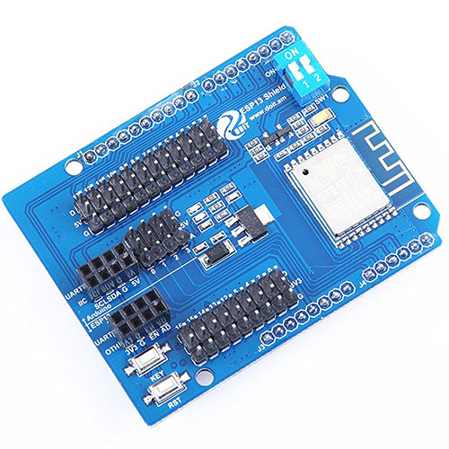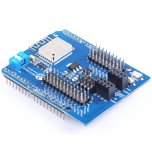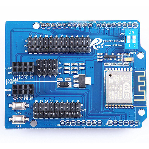 Wireless 802.11b / g / n standard. Supports two modes of STA / AP. Built-in TCP / IP protocol stack, you can configure a socket. It supports standard TCP / UDP server and client. Support serial baud rate: 1200/2400/4800/9600/19200/38400/57600/74800/115200 bps. Serial data bits: 5/6/7/8 bits. Serial parity: None. Serial stop bit: 1/2 bit. Standard Arduino UNO, Mega pitch. Boot Arduino Pin 2/3/4/5/6/7/8/9/10/11/12/13. Lead ESP8266 GPIO 0/2/4/5/9/10/12/13/14/15/16 / ADC / EN / UART TX / UART RX. Reset. KEY Multiplexing configuration function keys. Two DIP switches enable Arduino serial port expansion and ESP8266 switch. WiFi operating current: continuous transmission: ≈ 70mA (200mA MAX), standby: <200uA. Wireless transmission rate: 110-460800bps. Operating temperature: -40 ℃ ~ +125 ℃. Module weight: about 20 grams.