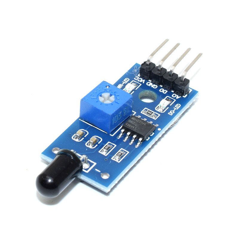 Features: 1, can detect the flame or wavelength at 760 nm to 760 nm range of light, the lighter the test flame distance is 80 cm, on the flame, the greater the distance test 2, the detection Angle of 60 degrees or so, particularly sensitive to the flame spectrum 3, the sensitivity is adjustable 4, the comparator output, signal clean, good waveform, driving ability is strong, for more than 15 ma 5, with adjustable precision potentiometer sensitivity adjustment 6, the working voltage of 3.3 V to 5 V 7, output form: digital switch output (0 and 1) 8, has a fixed bolt hole, convenient installation 9, small board PCB size: 3.2 cm x 1.4 cm 10, use the LM393 wide voltage comparator