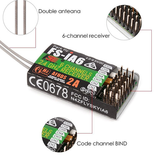 Features: Reliable, interference-free 2.4GHz AFHDS2A signal operation. Suitable for most RC cars and trucks. Lightweight upgrades instantly improve the overall performance of operation and durability. Digital receiver system, 6-channel receiver. Fast and extremely stable. Lightweight design. Easy to bind and very fast connection. 6-channel receiver, compatible with Flysky i4 i6 i10 GT2E GT2F GT2G transmitter. Product Specifications: Channel: 6 channels Uses: Suitable for RC fixed wing / glider / helicopter Frequency range: 2.4-2.48GHz Number of bandwidths: 160 Transmit power: not more than 20dBm MOER RF receiver sensitivity: -105dbm 2.4G mode: automatic frequency of the second generation of digital systems Code: GFSK Antenna length: 26mm Input power: 4.0-6.5V DC Size: 40 * 21 * 7mm Package Included: 1 Flysky FS-iA6 receiver 1 binding plug product information Package size 5.9 x 3.9 x 2 inches Product weight 0.16 oz