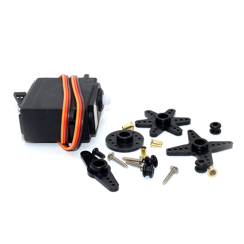 Operating speed: 0.2sec / 60 degrees (4.8V no load)- Operating speed: 0.16sec / 60 degrees (6.0V no load)- Stall torque: 5.5 kg-cm at 4.8V- Stall torque: 6.5 kg-cm at 6V- Operation voltage: 4.8 - 6 volts- Temperature range: 0 to +55'C- Dead band width: 10us- Connector wire: 30cm