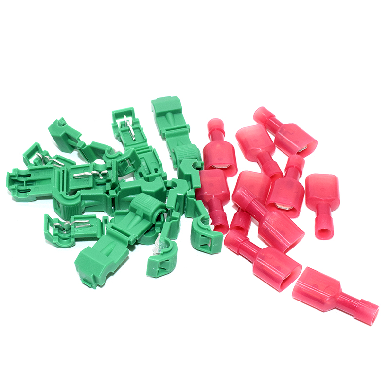 Green T4 0.5-1.5mm2 Cable / T-Tap Wire Connector Self-Stripping Quick Splice Electrical Wire Terminals Insulated Quick Disconnect Spade Terminal For Hard Wire