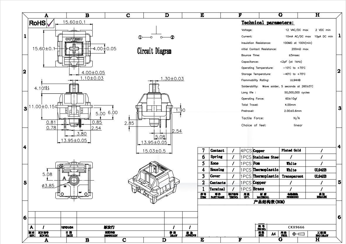 / Grey Outemu Switches for Mechanical Keyboard Gaming MX Switch