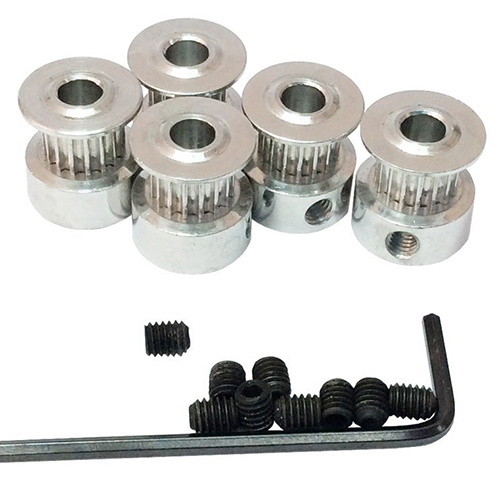 Product Name: GT2 timing pulley; Number of teeth: 16 teeth; Pulley aperture: 5mm; Two timing screws have been installed on each timing pulley and screwed into the pulley; Using high-quality aluminum, beautifully processed, smooth formation; high-precision positioning; The packing list includes: 5pcs × 2GT 16T hole 5mm timing pulley + 10pcs × screw; Timing pulleys with a small gap; the perfect choice for the Prusa Mendel CNC or similar. product description GT2 timing pulley Specifications: Model: 16-2GT-6 BF teeth Distance: 2mm Number of teeth: 16 teeth Flange: double Material: aluminum alloy Fixation: 2 * M4 Synchronous pulley aperture: 5mm Tooth width: 7mm For synchronous belt width: 6mm