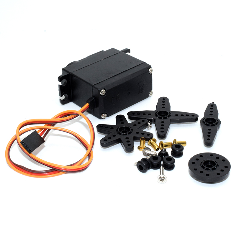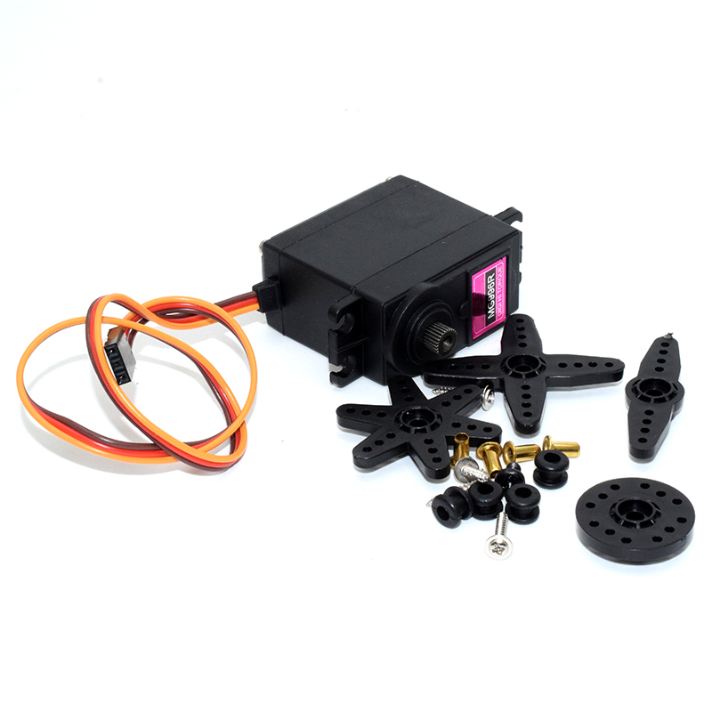 Supplier Code: MG996R Product Weight: 55g Product size: 40.7 * 19.7 * 42.9mm Products Rally: 9.4kg/cm (4.8V), 11kg/cm (6V) Reaction speed: 0.17sec/60degree (. 4.8v) 0.14sec/60degree (6v) Operating voltage: 4.8-7.2V Operating temperature: 0 C-55C The gear forms of: metal gear The working dead: 5us (microseconds)