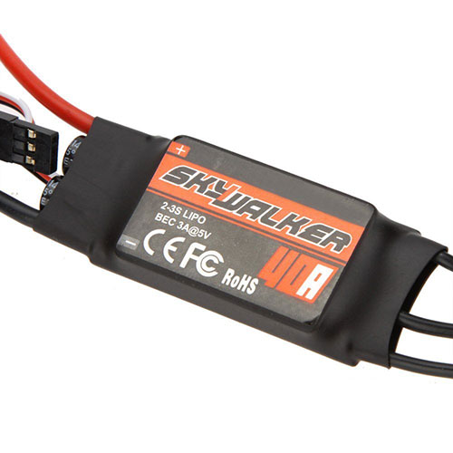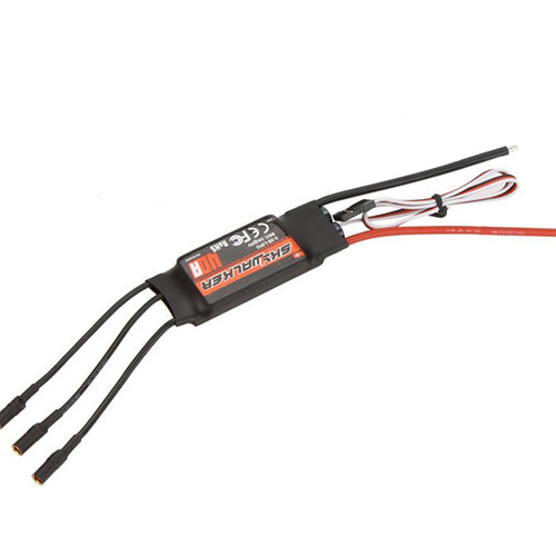 Product description Specification: 1. Continuous current: 40A 2. Burst Current (>10s): 55A 3. BEC output: 5V 3A 4. BEC mode: Linear 5. BEC Output Capability: 5 Servos (2S Lipo) / 4 Servos (3S Lipo) 6. Battery Cell: 2-3S (Lipo) / 5-9 cells (NiMH) 7. Maximum speed: 210000 RPM (2 poles motor), 70000 RPM (6 poles motor), 35000 RPM (12 poles motor). 8. Usage: Apply for 400/450 helicopter 3D, and 32 level fixed wing sports 9. Weight: 39g 10. Dimension: 68mm x 25mm x 8mm
